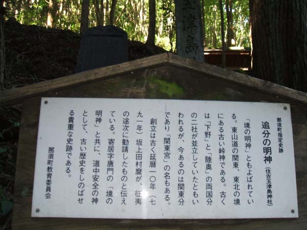 | 国道294号線をまだまだ北に向かいます。 8月14日 7:50 白河への旧道 が、ここでいったん県道60号線に入り、さらに県道76号線に分け入りました。地図で言うとこの辺です。 ![]() こんな標識が出ています。そう、あの白川の関に向かう峠道です。 ![]() なぜにこんなけものみち、失礼、田舎道、失礼(いや、いいのか)、に入るのかというと、ここが6〜7世紀頃の東北へはいる古道だそうだからです。全線がかつての東山道に該当し、途中の白河市旗宿では国史跡に指定される白河関跡付近を通過している。東山道とは、律令時代、畿内と東北諸国の国府を結ぶ幹線道路だったそうです。古代・中世の人はこの道を歩いたのです。 ![]() ![]() いやー、昔の人はここを歩いたのかー。 そしてその峠の山頂にあるのがこの、「従是北白川領」の碑。ごめんなさいぶれてます。 ![]() 道を挟んで反対側には「追分けの明神」があります。 ![]() ![]() これも手ぶれしてます。バイクで手がしびれていたのでしょうか?すんません。ここの大杉は本当に大きい。何年ここに立っていて、道行く人を見守ったのでしょうか。 ![]() 白河に置かれた古代の関がどこかについては、古来、多様に言い伝えられているが、寛政12年(1800年)、白河藩主松平定信が地図や歴史書、詠歌、老農の話をもとにして此こそ古代白河の関の地と定め、旗宿の地に古関蹟碑を建立した。 松尾芭蕉は、「おくのほそ道」の冒頭に「白川の関こえんと、そゞろ神の物につきて心をくるはせ、道祖神のまねきにあひて、取もの手につかず。」と書いた白河の地に、元禄2年(1689年)4月20日(新暦6月7日)に来ています。はい、320年後に私が訪ねました。ではせっかくなので、何か詠みましょう。 「もののふの志に違いなし芭蕉も訪れし白河の関」 by admin 東北ツーリングは好天に恵まれて、まだまだ続きます....。 |