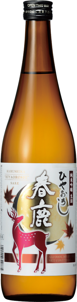 毎秋人気、奈良の老舗蔵の純米吟醸ひやおろし。紅葉舞う中で月を見上げる鹿のラベルも古都・奈良の秋の風情たっぷり。口に含むとやわらかな吟醸香と、ほどよく熟成された上品な旨味やお米の優しい甘味が染み渡ります。秋の味覚を引き立てるまろやかな口当たりをお楽しみください。