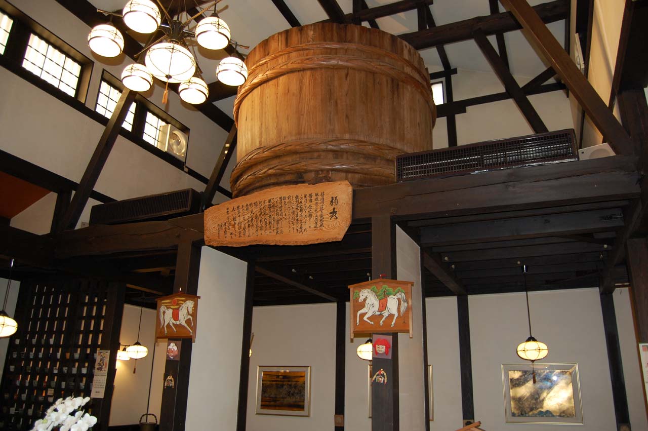 お店は中が広く、インテリアのセンスが良く、巨大な醤油樽が