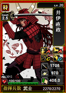 徳川氏の家臣(家臣になった当時は外様)。徳川四天王の一人。自身が組織した井伊の赤備えは戦国屈指の精鋭部隊として特に有名である。徳川氏きっての政治家・外交官としても名高い。遠江国井伊谷の出身で若手の武将でありながら、柳営秘鑑では榊原氏や鳥居氏と並び、三河岡崎御普代として記載されている(譜代の最古参は、安城譜代)。また、江戸時代に譜代大名の筆頭として、江戸幕府を支えた井伊氏の手本となった人物であり、現在の群馬県高崎市と滋賀県彦根市の発展の基礎を築いた人物でもある。