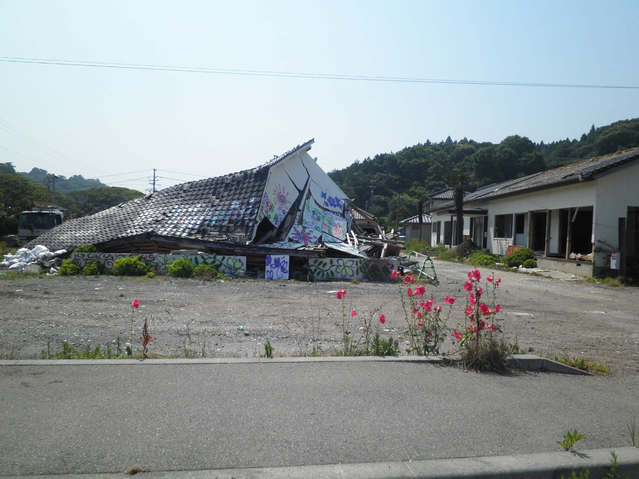 ここにくるまでにすでに沢山の崩壊した住宅を見てきたが、こうやって改めて写真に納めてみると衝撃的である。住まれていた方はどちらに避難されているのか。心配だ。